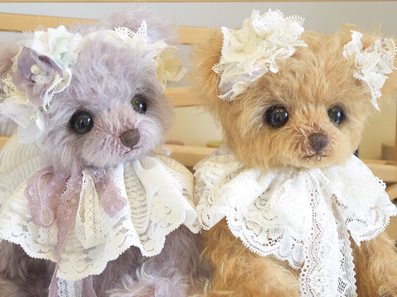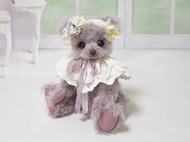 ヘッドドレスには、数種類のレースやアーティフィシャルフラワー、パールなどをギャザリングしてぬいつけました。
