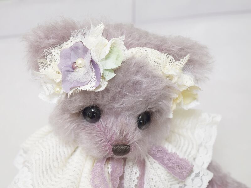 クリンクリンのラティニティモヘアをブラシで解きほぐし、少しふわふわ感を出してみました。