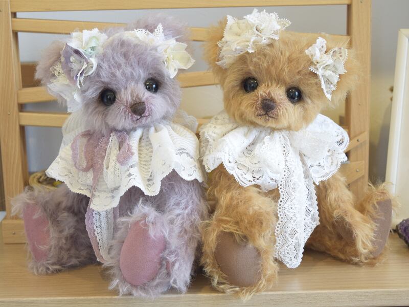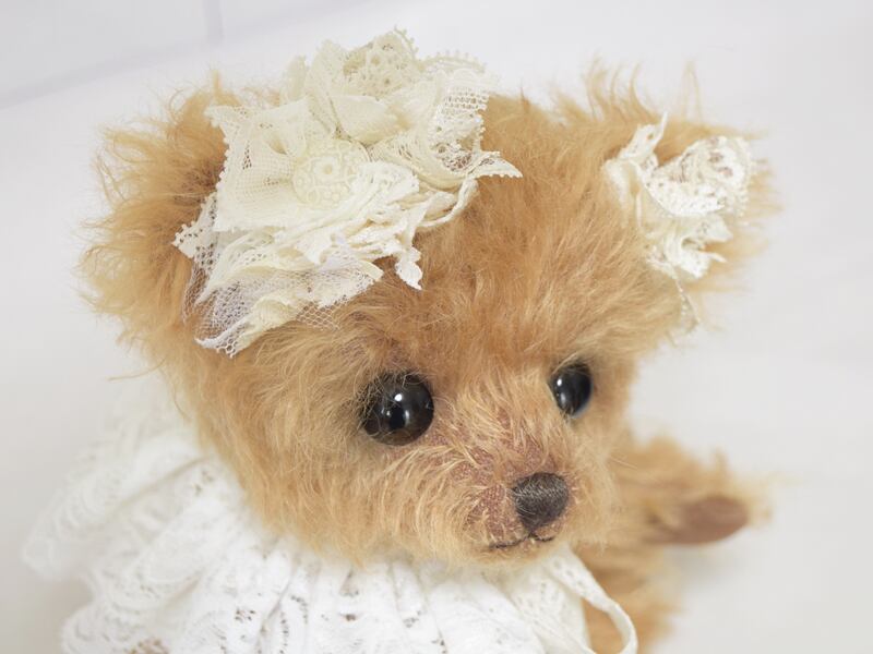 ヘッドドレスには、数種類のレースをギャザリングしてぬいつけました。